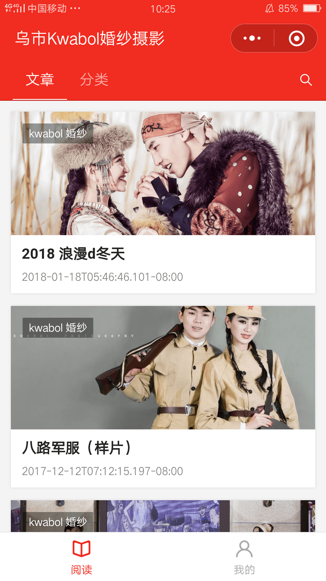 Kwabol婚纱摄影小程序是一个提供并分析婚纱摄影案例的资讯类微信小程序,整合婚纱摄影案例资讯,编辑并推送到用户手机客户端中供用户浏览。这个小程序的功能相对比较单一,只是推送婚纱摄影类的资讯,展示商家联系方式,因此使用起来会更加顺畅轻便。